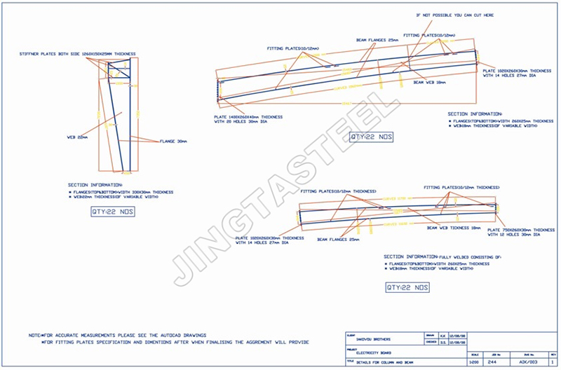 pan of main beam: 54meters. (The main beam is divided into four parts)