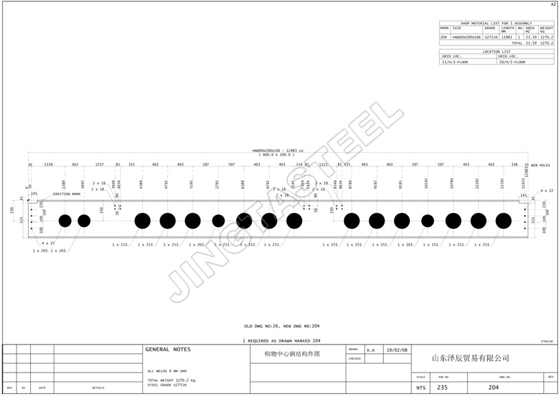 Processing techniques: cutting, welding, drilling from hot rolled H beam,